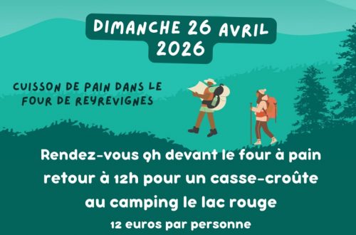 Organisée par l’Association des Amis de Reyrevignes, Parcours de 10 km environ – départ à 9 h au four. Casse croute à 13 h avec dégustation du pain cuit à l’ancienne. Prix 12 € sur réservation avant le 19 avril au 06 37 67 54 07.