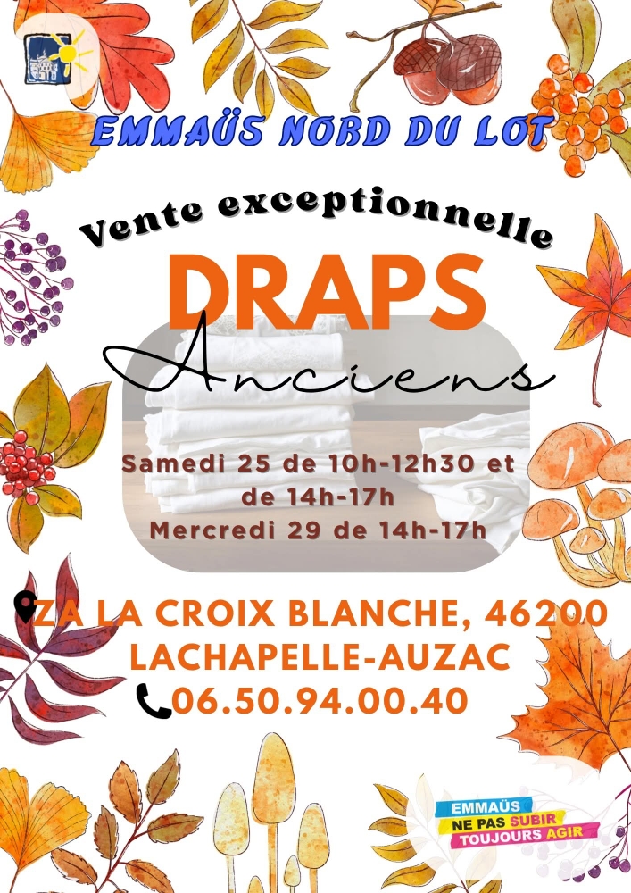 Emmaüs : vente de draps, matelas, oreillers …